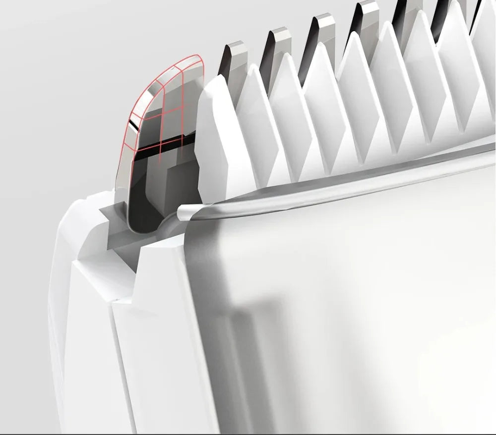 1. Gentle Cutting: Rounded precision blades trim hair smoothly without pulling or irritation.